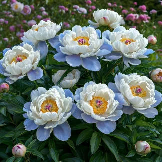 Представляем вашему вниманию новый завораживающий сорт пиона — «Акварельный этюд». Этот уникальный цветок очарует вас плавными переходами бело-голубых оттенков, словно написанными лёгкими мазками кисти. «Акварельный этюд» — это воплощение нежности, воздушности и изысканности, который станет настоящим украшением вашего сада, привнося в него ощущение лёгкости и спокойствия.